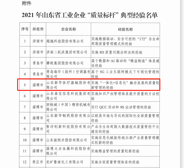喜報| 新華醫療榮獲山東省工業企業“質量標桿”